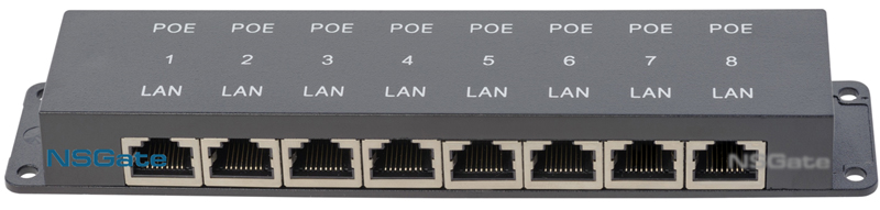 8-и портовый пассивный PoE-инжектор NIP-808PP имеет 8 пар RJ-45 разъемов.