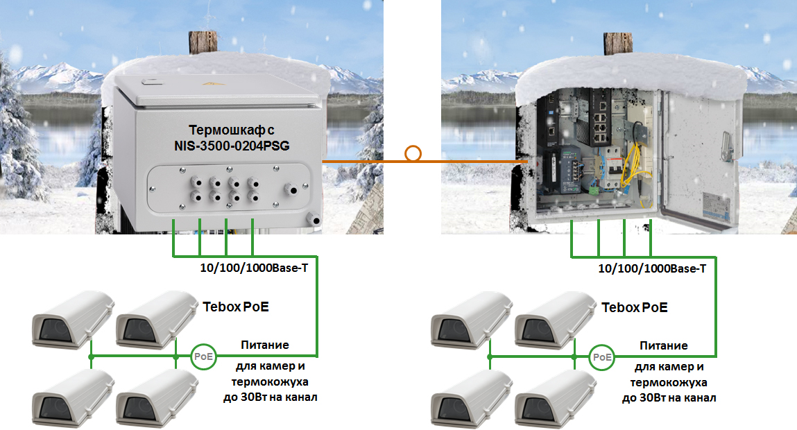 Решением, которое исключает подобные проблемы, является использование новых термокожухов с питанием по технологии PoE.
