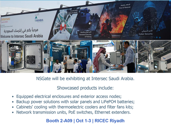 | NSGate at Intersec Saudi Arabia Riyadh, KSA | Oct. 1-3 | Booth 2-A09 | 31.08.24 |